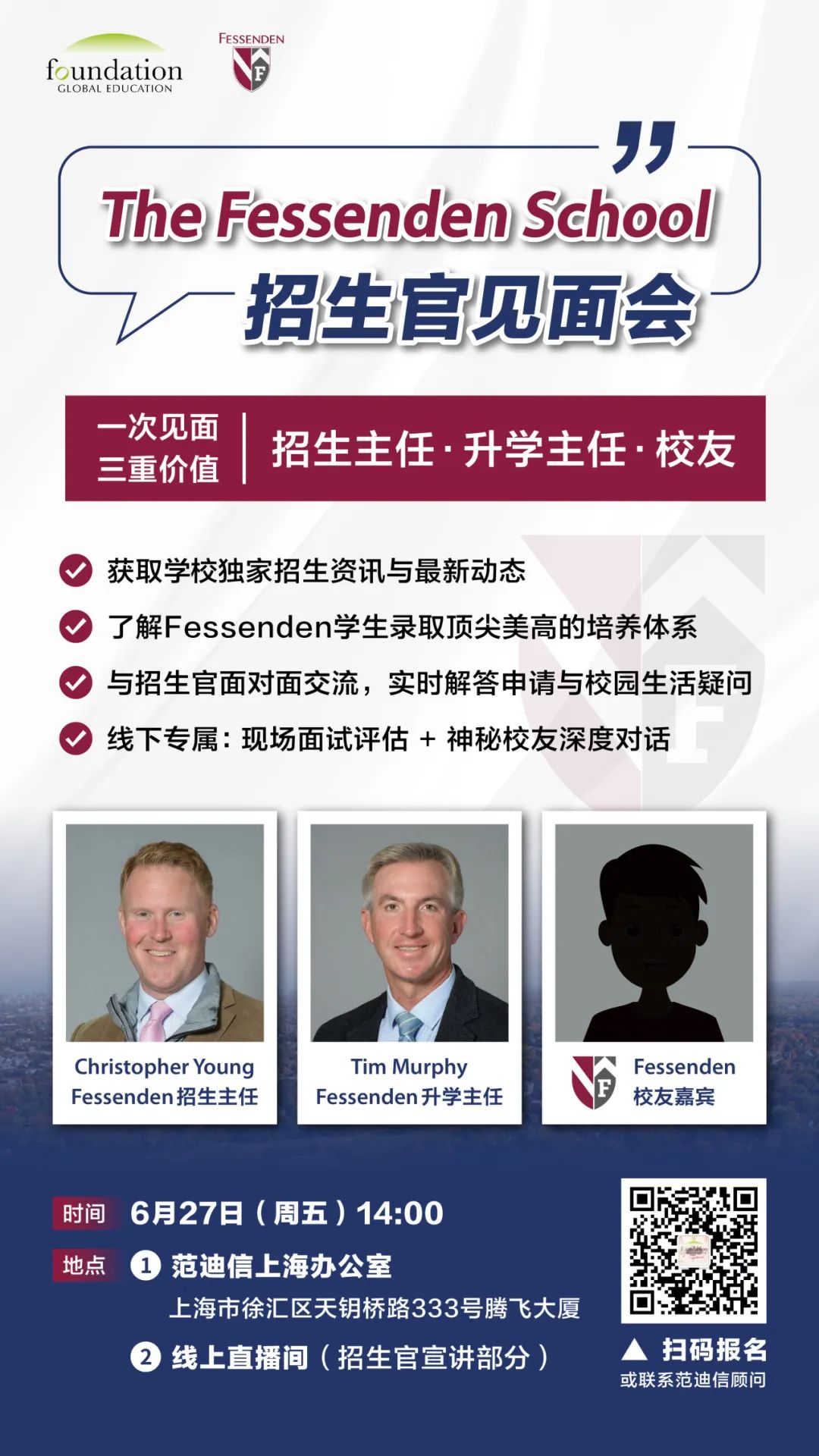 Fessenden’s Director of Admissions Christopher Young and Director of Secondary School Placement Tim Murphy will be visiting our Shanghai office on June 27!
