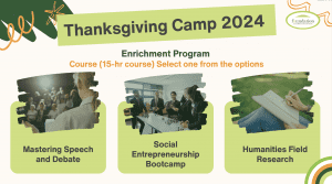 Join us for an enriching Thanksgiving camp designed to boost both academic and soft skills. Participants will engage in focused academic skills building and soft skills training, enhancing their overall development. Students can pick one of the three courses:
